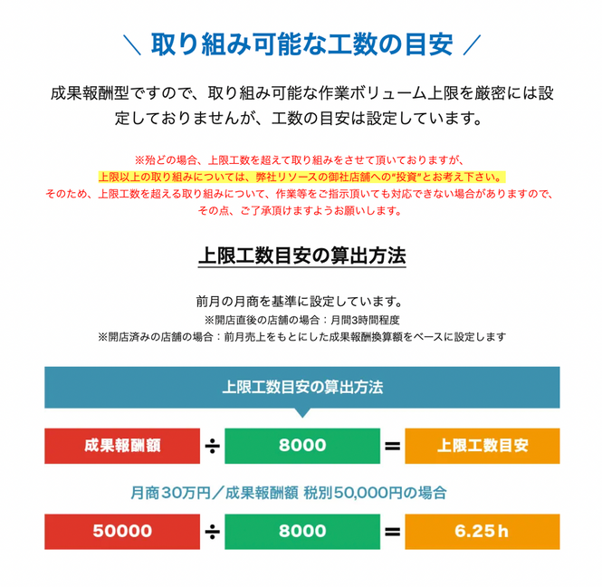 そのため、上限工数を超える取り組みについて作業等をご指示いただいても対応できない場合もございますこと、